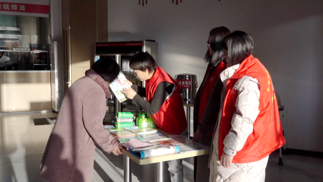 每至饭点,食堂内热闹非凡,居民们围坐在一起用餐聊天,社区工作人员便抓住时机,穿梭于餐桌之间,开启一场场别开生面的宣传活动。